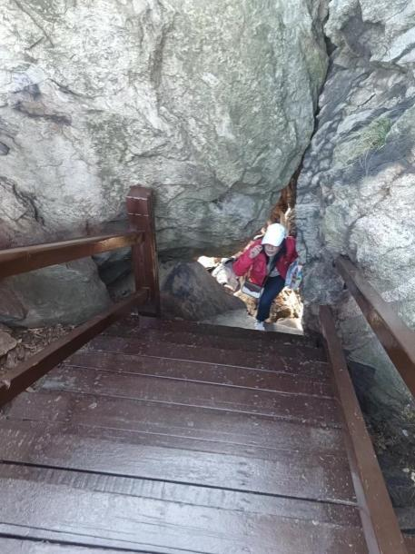 磁山看似不高,實(shí)際上對(duì)多數(shù)人來(lái)說(shuō)也是一個(gè)挑戰(zhàn),過(guò)了“一線天”,經(jīng)過(guò)一段木棧道,以為快要登頂了,誰(shuí)料峰回路轉(zhuǎn),發(fā)現(xiàn)距離最高峰還有很長(zhǎng)一段距離,堅(jiān)持還是放棄?當(dāng)然是堅(jiān)持!雖然腳步沉重,但仍咬牙堅(jiān)持,雖然衣服已被汗水打濕,但并不妨礙我們前進(jìn)的步伐。只要確定目標(biāo),就必然有無(wú)限的動(dòng)力!